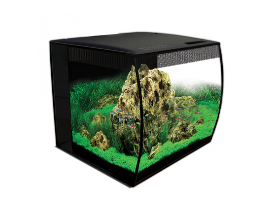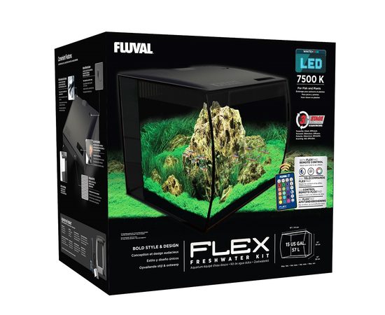 Стильные нано аквариумы Fluval FLEX с выгнутым передним стеклом станут украшением любого интерьера. Встроенная трехступенчатая система фильтрации поддерживает воду в аквариуме кристально прозрачной. Производительность фильтра 500 л/час. Механическая, химическая и биологическая фильтрация. С помощью пульта дистанционного управления можно менять яркость и цвет освещения. Светодиодный светильник с цветовой температурой 7500К для активного роста растений и яркого окраса рыб. В комплект включен пульт дистанционного управления трехканального светодиодного диммера (RGB) со спецэффектами (облачность, молнии и тп.).Количество светодиодов 48 + 6 RGB, 10,8W, 24500 LUX. Специальное покрытие верхней части стекол в виде сетки деликатно прикрывает уровень воды и выходное отверстие фильтра. На крышке есть специальное отверстие для удобной подачи корма гидробионтам. В системе фильтрации предусмотрено место для установки обогревателя. Размер аквариума 41 x 39 x 39 см.