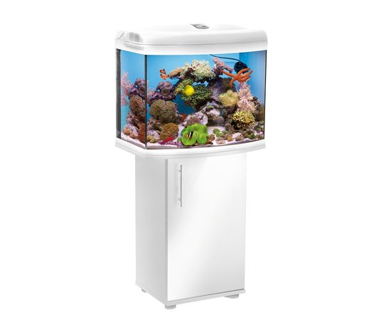 Комплексный набор для обустройства морского рифового аквариума дуговым передним стеклом, крышкой, светом, фильтром, пеноотделителем, охладителем. Профессиональное оборудование для запуска миниатюрного кораллового рифа, а также разведения небольших рыб и беспозвоночных обитающих в солёной воде. Aквариум ёмкостью 105 литров с дуговым передним стеклом. Уникальная крышка снабжена тремя флуоресцентными лампами T5 мощностью 24 W каждая и голубыми диодами LED, обеспечивает превосходное освещение аквариума (как в дневное так и в ночное время). Система интегрированных вентиляторов в крышке гарантирует эффективное удаление избытка тепла и сдерживает рост температуры воды в аквариуме, даже во время летней жары.