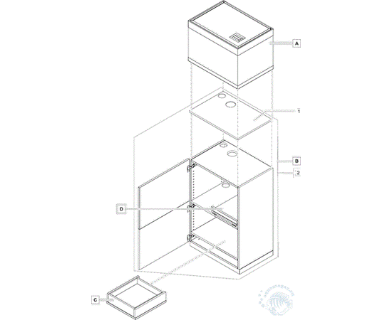 - Практичный: За счет того, что в аквариуме установлена шахта и в дне аквариума сделаны технологичные фитинги для фильтра, аквариум снаружи лишен лишних шлангов и проводов. Монтажные принадлежности, шланги и кабели хорошо скрыты.