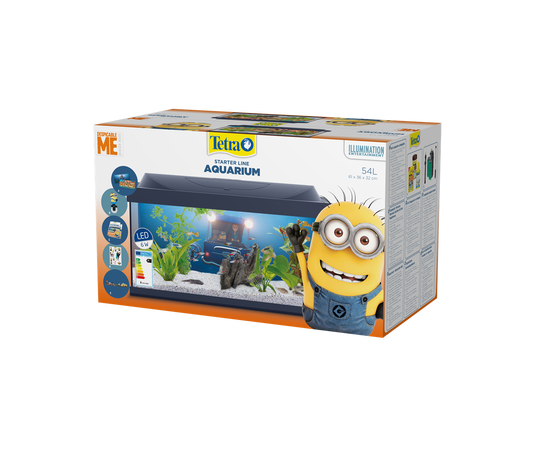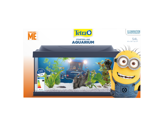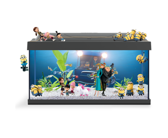 С аквариумом Тетра «Гадкий я» все поклонники миньонов смогут легко и уверенно начать изучать мир аквариумистики. В комплект входит базовое оборудование, а также корм и средства по уходу, необходимые на начальном этапе, и, кроме того, полезные инструкции по установке и декорации с изображением миньонов.