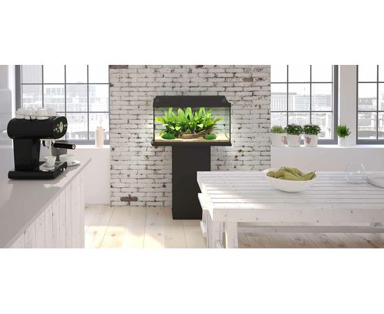 Удобный лючок для подачи корма в крышке позволяет легко кормить рыб, не снимая для этого полностью крышку. Встроенная в крышку светодиодная подсветка обеспечивает яркое и естественное освещение аквариума и характеризуется при этом отличными показателями энергоэффективности и долговечности.