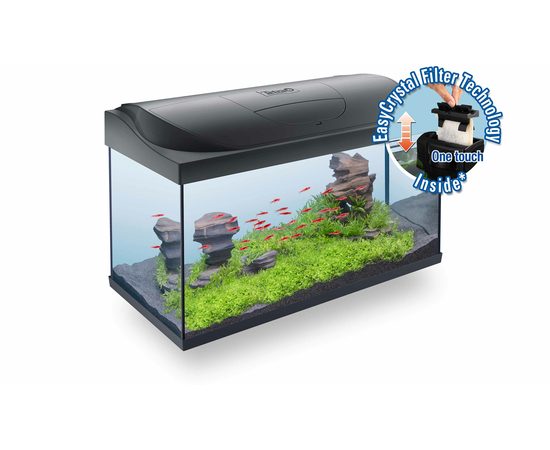 Фильтр Тетра ИзиКристал, который также включен в комплект поставки, поддерживает воду чистой и прозрачной, эффективно удаляя загрязнения и водоросли. Описание процесса фильтрации: В процессе биологической фильтрации полезные бактерии заселяют губку фильтра. При механической фильтрации фильтрующий картридж удаляет из воды даже мельчайшие плавающие частицы. И что самое замечательное, наличие сменных фильтрующих картриджей означает, что вам не придется тратить много времени на очистку фильтра. Установка картриджей очень проста — вам даже не придется мочить руки! Для поддержания оптимального качества воды замену картриджа необходимо производить каждые четыре недели.