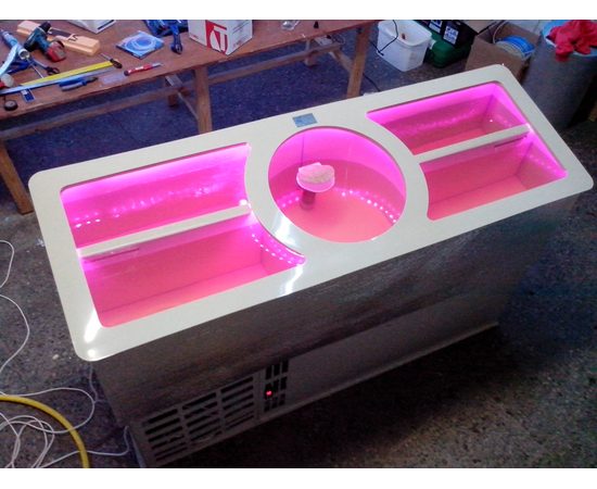 Аквасистема для содержания морских гидробионтов(такие как мидии устрицы) в условиях максимально приближенных к естественной среде обитания. Для использования системы необходимо только подключение к бытовой электрической сети 220 В. Система представляет собой продуманную до мелочей аквасистему. В комплекте есть: холодильное оборудование, насосы, биофильтры, флотатор, светодиодная подсветка, система автоматики контроля температуры воды.
