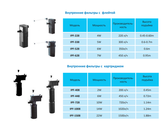 | IPF-628 | ALEAS Внутренний фильтр с флейтой 450 л/ч |