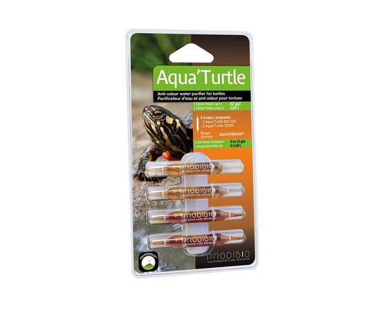 Препарат содержит два продукта: 2 ампулы aqua turtle odor, который устраняет неприятный запах воды и 2 ампулы aqua turtle bacter, состоящий их набора специальных штаммов бактерий, утилизирующих продукты жизнедеятельности черепах и очищающих воду. 1 ампула рассчина на объем от 0 до 60 литров.