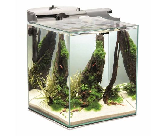 Аквариумы SHRIMP SET оборудованы покровным стеклом, которое предотвращает самовольное покидание аквариума его обитателями, а также снижает испарение воды.