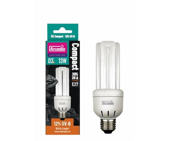 Пустынные виды рептилий в естественной среде обитания подвергаются сильному солнечному свету и требуют относительно высоких концентраций UV-B света, и поэтому их следует держать под лампами, со значениями от 12% UVB. Для пустынных видов 12% UVB – это отличный вариант для синтеза витамина D3. Благодаря балансу UVA, который составляет 30%, лампа производит превосходные естественные цвета и помогает рептилиям активизировать свой природный скил (навык) – тетрахроматию. Для производства данных ламп применяется ультратонкое стекло и специальный люминофор нового поколения, что делает эти лампы самыми качественными на рынке террариумистики. Лампы не имеют большой просадки в УФ после первых 100 часов работы. Вы можете быть уверены, что с помощью Arcadia Compact D3+ Reptile Lamp 12%, вы получите самое лучшее освещение на базе ламп Е27. Лампы Arcadia Compact D3+ Reptile Lamp 12% эффективны в течение одного года и в течение этого времени будут поддерживать здоровье вашего питомца на очень высоком уровне.