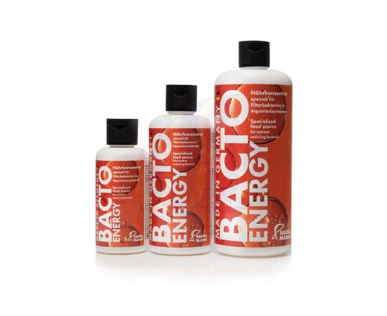 Bacto Energy (до этого упаковка - UltraBak) - это раствор для бактерий, обычно живущих в морском аквариуме. После добавления бактерий начинают быстрее расти, что способствует трансформации таких нежелательных соединений как нитрит, нитрат и фосфат в биомассу бактерий. Сами же бактерии либо удаляются скиммированием, либо улавливаются кораллами и другими животными-«фильтровальщиками» в качестве пищи, являясь таким образом дополнительным источником питательных веществ для гидробионтов. Большинство кораллов могут также напрямую усваивать UltraBak как источник энергии. Усиливается рост денитрифицирующих бактерий, вследствие чего «живые» камни и особенно Цеолитовые фильтры начинают более эффективно участвовать в разложении и удалении нежелательных соединений азота. UltraBak снижает содержание в воде нитритов, нитратов и фосфатов; в сочетании с Ultralith и UltraminS препарат становится безопасным и легким способом поддержания высокого качества воды с крайне низким содержанием нежелательной избыточной растворенной органики, а также изумительных цветов рифового аквариума. UltraBak прекрасно подходит для аквариумов с Цеолитовым фильтром и без него.