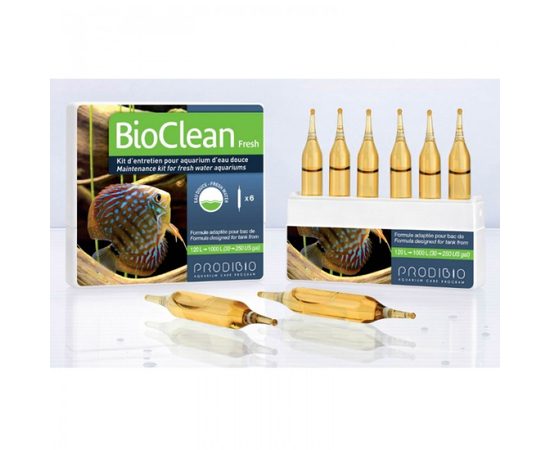 В одной упаковке BIO CLEAN содержится две добавки: сочетание мощного эффекта BIO DIGEST истимулирующего действия BIO TRACE для пресной воды позволяет быстро очистить аквариум и удалить из него водоросли естественным путём. Содержащиеся в BIODIGEST гетеротрофные бактерии обеспечивают биологическую очистку аквариума, уничтожая органические загрязнения, причём каждый штамм завершает работу, начатую другим штаммом. Таким образом, бактерии обеспечивают чистоту аквариума, снижают содержание нитратов и фосфатов, препятствуют размножению водорослей. Поскольку бактерии размножаются с разной скоростью, для сохранения их оптимального соотношения необходимо добавлять в аквариум одну ампулу BIO DIGEST каждые две недели. BIO TRACE для пресной воды содержащие концентраты олигоэлементов, способны более, чем в 10 раз ускорить размножение бактерий и продукцию ферментов, уничтожающих органические загрязнения.