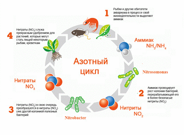 От чего зависит азотный цикл КИСЛОРОД Процесс нитрификации – это процесс окисления азотных соединений. Получается, что кислород нужен не только рыбам для дыхания, но и бактериям для окисления. В аквариумах с растениями этот вопрос не стоит так остро, так как растения сами выделяют кислород. В аквариуме без растений необходима...