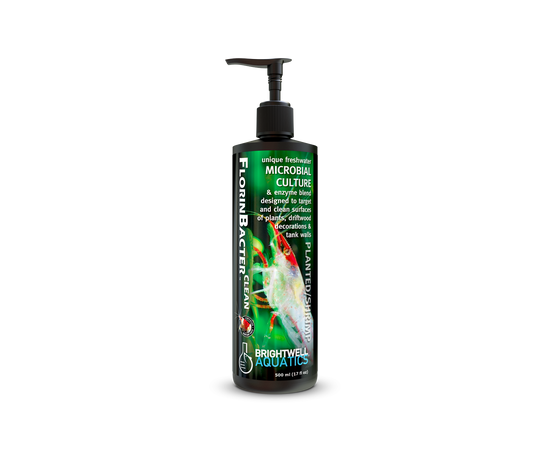 Brightwell Aquatics ShrimpFlorinBacter Clean представляет собой селективный комплекс чрезвычайно эффективных микробов и ферментов, которые не только снижают концентрацию органического азота, аммиака, нитритов, нитратов, фосфатов и органического углерода во всех пресноводных экосистемах, но и облегчают уход, фактически разрыхляя скопления и покрытия. .