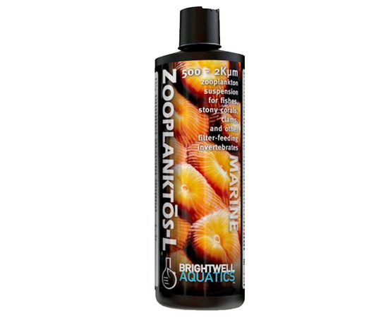 Brightwell Aquatics Zooplanktōs– концентрированная обогащенная фитопланктоном суспензия взрослой коловратки Brachionus sp., ее яиц, яиц других групп ракообразных, вследствие чего этот продукт является источником питания, богатого содержанием аминокислот, жирных кислот, включая полиненасыщенные кислоты Омега-3, витаминов, минералов и пигментов (каротиноиды), придающих смеси натуральный ярко-желтый цвет. Все перечисленные кормовые компоненты по своему размеру попадают в два класса: микропланктона (20.0 - 200.0 мкм) и мезопланктона (200,0 – 2000,0 мкм). Это оптимальный размер для кормления многих видов жестких кораллов (в частности, тех из них, которые имеют короткие щупальца), равно как и моллюсков и прочих двустворчатых, губок, оболочников (асцидий), перистых червей (червей Рождественское дерево, веерных червей и др.), личинок беспозвоночных, таких как большинство членистоногих и двустворчатых, молоди рыбы, взрослой рыбы, питающейся планктоном (антиасы, граммы, псевдохромисы, хромисы, немателеотрисы и т.д.), рыбы, охотящейся на микробеспозвоночных (мандаринки, некоторые бычки, губаны и т.д.).