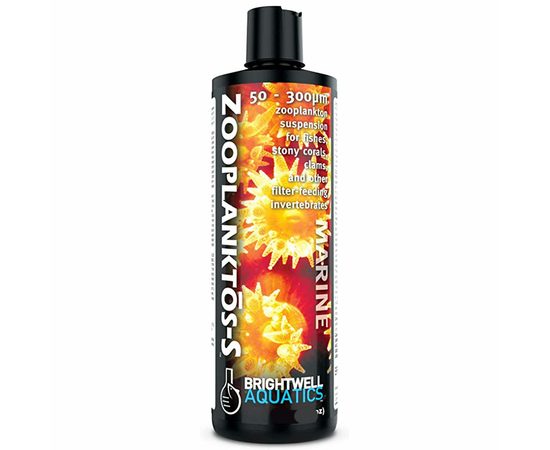 Brightwell Aquatics Zooplanktōs– концентрированная обогащенная фитопланктоном суспензия взрослой коловратки Brachionus sp., ее яиц, яиц других групп ракообразных, вследствие чего этот продукт является источником питания, богатого содержанием аминокислот, жирных кислот, включая полиненасыщенные кислоты Омега-3, витаминов, минералов и пигментов (каротиноиды), придающих смеси натуральный ярко-желтый цвет. Все перечисленные кормовые компоненты по своему размеру попадают в два класса: микропланктона (20.0 - 200.0 мкм) и мезопланктона (200,0 – 2000,0 мкм). Это оптимальный размер для кормления многих видов жестких кораллов (в частности, тех из них, которые имеют короткие щупальца), равно как и моллюсков и прочих двустворчатых, губок, оболочников (асцидий), перистых червей (червей Рождественское дерево, веерных червей и др.), личинок беспозвоночных, таких как большинство членистоногих и двустворчатых, молоди рыбы, взрослой рыбы, питающейся планктоном (антиасы, граммы, псевдохромисы, хромисы, немателеотрисы и т.д.), рыбы, охотящейся на микробеспозвоночных (мандаринки, некоторые бычки, губаны и т.д.).