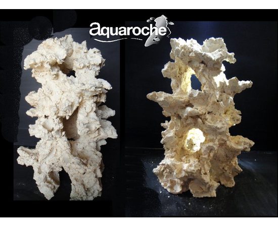 Центральная декорация, просматриваемая со всех сторон с функцией "живого" камня и местами для кораллов и актиний с отверствием посередине под трубу диаметром 63 мм. Ручная работа. Для аквариумов выше 50 см. Высота 45 см., длина 27 см., ширина 27 см.