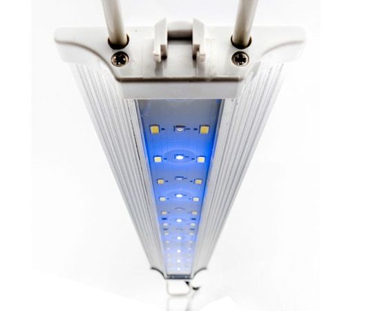 С помощью алюминиевых ребер в верхней части светильника он охлаждается и генерирует сравнительно меньше тепла, чем Т5 / Т8 люминесцентные лампы, нагрев которых часто приводит к проблемам с температурой воды в закрытых аквариумах летом. Тем самым светильник прослужит долгие годы.