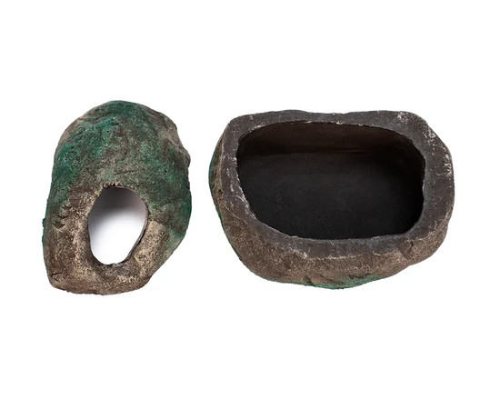 Влажные камеры NOVAMARK TERRA – это новинка на рынке террариумистики. Влажные камеры NOVAMARK, в отличии от изготовленных из полиэфирных смол, выделяющих вредные для здоровья людей и животных фенолы, изготовлены из пищевого нетоксичного пластика, утяжеленного карбонатом кальция (мраморная мука). За счет своего состава они совершенно не токсичны и безопасны для животных, даже при нагревании и при использовании в воде. Цветное покрытие состоит из инертной краски, которая также безопасна для рептилий и амфибий.Все укрытия данной линейки имеют совершенно новый природный дизайн. Рельефное матовое покрытие, напоминающее камень, покрытый мхом, отлично впишется в любой дизайн террариума, и не будет выделяться даже в природном флорариуме с натуральным оформлением. За счет отсутствия глянца влажную камеру можно обрастить тропическим мхом, что сделает ее еще более необычной.