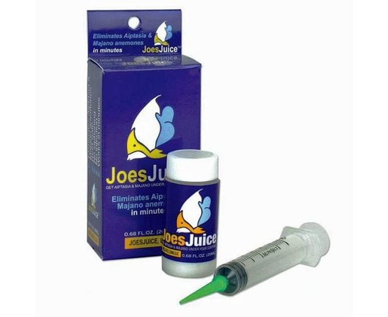 JoesJuice – это безопасный для рифа и легкий в применении продукт, который убивает вредные анемоны Aiptasia и Majano. Просто скормите надоедливому анемону небольшое количество JoesJuice, и вы увидите результат. В течение нескольких минут анемон исчезнет - все отлично!