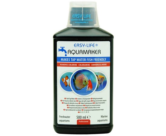 Это средство делает агрессивную водопроводную воду подходящей для всех пресноводных и морских аквариумов. AquaMaker также можно использовать в рифовых аквариумах и садовых прудах. Это абсолютно безопасно для всех рыб, растений, кораллов, креветок, улиток и биологического фильтра. AquaMaker очень универсален: Удаляет хлор Удаляет хлорамин Удаляет тяжелые металлы, такие как медь, цинк и свинец Связывает и детоксифицирует ядовитый аммиак Связывает и нейтрализует токсичный нитрит Связывает и нейтрализует нитраты Защищает слизистые оболочки и жабры рыб AquaMaker не влияет на pH, KH или GH.