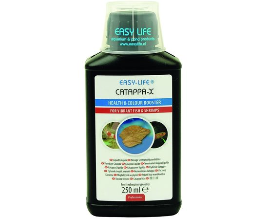 Листья индийского миндаля (дерева Catappa) - это весьма ценный продукт для обитателей аквариума, они проявляют целебные свойства, при погружении в воду. Особенно они полезны для рыб и креветок. Но при длительном пребывании в воде листья начинают разлагаться, это имеет свои неприятные последствия: окрашивание воды в коричневый цвет, неприятный запах, а также размножение бактерий и водорослей. Easy Life Catappa-X - уникальное средство, которое вобрало целебные свойства листьев индийского миндаля и при этом совершенно не загрязняет воду, снижает количество болезнетворных бактерий. Сильные стороны раствора Catappa-X Рыба и креветки с более яркими цветами Улучшает общее здоровье живых существ Предотвращает болезни Не делает воду коричневой Никакого дополнительного органического загрязнения
