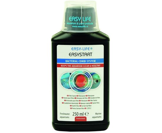 EASYSTART - ЕСТЕСТВЕННЫЙ ФИЛЬТР-СТАРТЕРЕго цель - быстро очистить и стабилизировать воду при оборудовании (наполнении) нового пресноводного или морского аквариума, чтобы он подходил для рыб. EasyStart - это уникальное сочетание высокоактивных бактериальных культур. Уникальный носитель бактерий обеспечивает ускоренное увеличение количества полезных бактерий, так что, например, можно избежать образования ядовитых нитритов. Это также помогает уменьшить воздействие вредных бактерий и избавляет воду от тяжелых металлов и других химических загрязнений. Результатом является здоровый аквариум с живыми рыбками, которые имеют яркие цвета. Использование Easy-Life EasyStart Хорошо встряхнуть и сразу использовать Мутность воды исчезнет через пару часов. После вскрытия хранить в прохладном темном месте. В первый день: Полная дозировка 10 мл на 50 литров. Через неделю: Полная дозировка 10 мл на 50 литров. Через 2 недели: Полная дозировка 10 мл на 50 литров Для предотвращения/в случае пика нитрита: Полная доза каждый день 10 мл на 50 литров После 14-го дня вы можете использовать Easy-Life Filter Medium для регулярного обслуживания. Упаковка: 100 ml - 250 ml - 500 ml - 1,000 ml - 5,000 ml