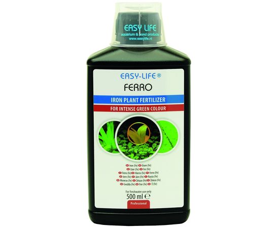 Easy-Life Ferro содержит легко усваемое железо для водных растений. Железо участвует в механизме образования хлорофилла, поэтому оно очень важно для развития и цвета растений. Недостаток железа приводит к тому, что листья желтеют, что называется хлорозом. Easy-Life Ferro помогает предотвратить эту проблему. Если в аквариуме есть быстрорастущие растения, то есть большая вероятность дефицита железа. В этом случае рекомендуется добавить Ferro для предотвращения проблем. Еженедельно 5 мл на 100 литров увеличивает концентрацию железа с 0,50 мг Используйте рекомендуемую дозировку еженедельно, чтобы сохранить растения здоровыми и зелеными.