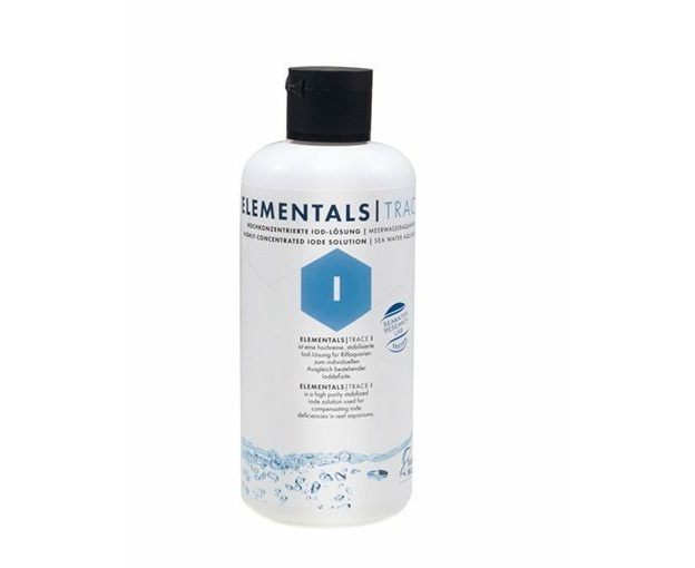 ELEMENTALS TRACE I-это раствор йода высокой чистоты, используемый для компенсации дефицита йода в рифовых аквариумах.