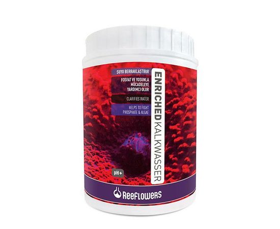 ReeFlowers Enriched Kalkwasser содержит чистый гидроксид кальция, обогащенный магнием и стронцием. Этот товар увеличивает количество кальция, магния и стронция, которые имеют решающее значение для формирования скелета, в сбалансированном соотношении.