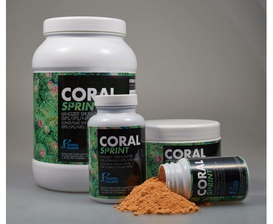 Полипы кораллов улавливают мельчайшие частички Coral Sprint, размер которых существенно меньше, чем у обычных кормов для кораллов, что, без сомнения, является преимуществом с точки зрения кормления всех кораллов, равно как и губок, а также кораллов без зооксантелл, для которых этот корм является самым выигрышным. Coral Sprint ликвидирует брешь снабжения кораллов всеми необходимыми им питательными веществами, которая обычно проявляется снова и снова в системах с низким содержанием питания, населяемых SPS и LPS. При добавлении препарата в систему не происходит повышения уровней NO3 и PO4, однако кораллы получают важное для них питание. Coral Sprint не является селективным продуктом, подчеркивающим индивидуальную окраску, или разработанным для определенной группы животных. Coral Sprint обеспечивает глубокую, богатую окраску с металлическим блеском и флуоресценцию поверхностей тканей всех типов кораллов. В дополнение препарат снабжает кораллы энергией, особенно в аквариумах с обедненной органикой средой или же в уходе за особыми системами, такими как Fauna Marin US Style Primefragsystem.