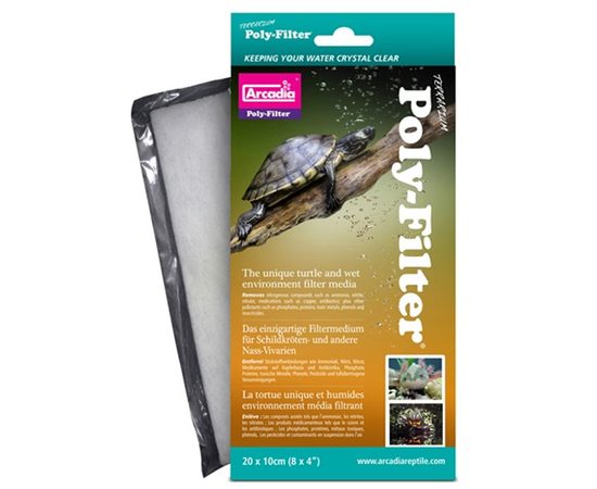 Не похож на другие вещества иногда используемые как помощь к фильтрации, раз насыщенный, Поли-фильтр не позволит опасным веществам вымыть назад в террариум. При удалении всех перечисленных нежелательных продуктов