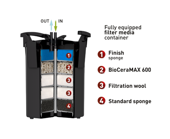 MAXI KANI – это линейка канистровых фильтров, приводимых в действие с помощью высокопроизводительных внешних насосов и предназначенных для использования как в аквариумах, так и в акватеррариумах. Большая фильтрующая ёмкость сочетается в них со свободой монтажа, так как подающий насос может быть установлен как внутри, так и снаружи аквариумной ёмкости, в том числе в горизонтальном положении. Дополнительным преимуществом этих фильтров является исключительная простота обслуживания. Благодаря своей конструкции фильтры прекрасно подойдут также для акватеррариумов, так как они могут работать в воде на глубине всего 10 см. Фильтры обеспечивают чрезвычайно эффективную механическую и биологическую фильтрацию воды, удаляя из неё как загрязнения, видимые невооружённым глазом, так и растворённые в воде токсичные вещества, которые могут представлять угрозу для здоровья обитателей аквариума. Отличаются простотой установки и не требуют частой чистки. Применение внешнего насоса позволяет размещать фильтр не только под аквариумом, но и рядом с ним или даже над аквариумной ёмкостью без ущерба для его производительности.