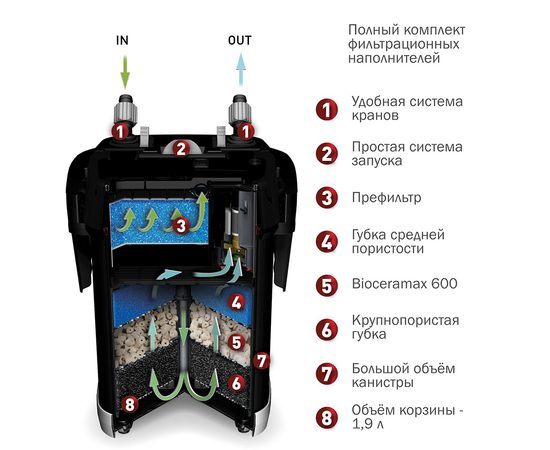 - 1ая корзина с средне пористой губкой- 2ая корзина с наполнителем BIOCERAMAX 600