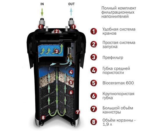 - 1ая корзина с средне пористой губкой- 2ая корзина с наполнителем BIOCERAMAX 600