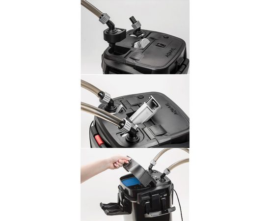Акваэль ультрамакс- это инновационные канистровые фильтры, предназначенные для качественной фильтрации воды в аквариумах. Фильтр сочетает в себе удобство эксплуатации, высокую производительность и большой объём фильтрующей канистры вместе с надёжностью и безопасностью. Оснащен префильтром. Размещение предварительного фильтра в крышке устройства позволяет проводить его замену, не вынимая фильтр из тумбочки. Шланги идут в комплекте 2 шт. по 1.5 м.
