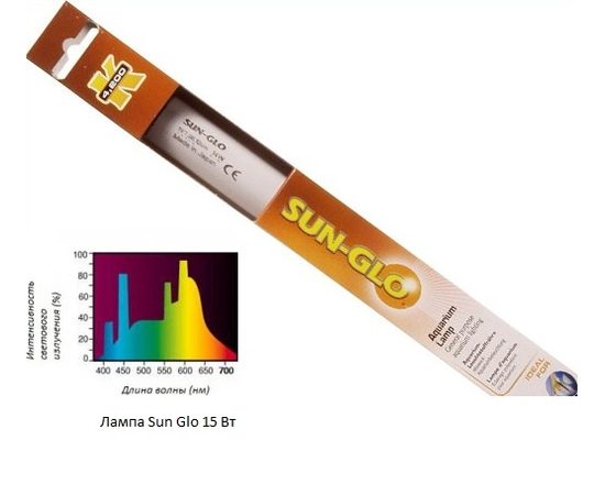 Спектральная флуоресцентная лампа для аквариума Sun-Glo. Средне-яркая лампа с теплым белым свечением. Способствует созданию более натурального освещения в аквариуме и окраски рыб. Рекомендуется использовать совместно с Aqua-Glo и Life-Glo 2.