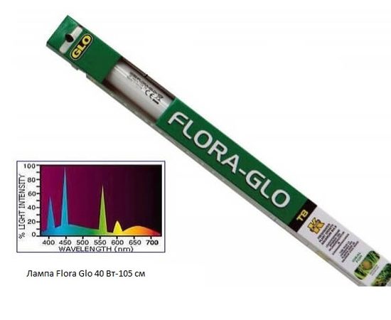 Спектральная флуоресцентная лампа для аквариума Flora-Glo. Средне- яркая лампа прекрасно подходит для аквариумов с живыми растениями или террариумов. Излучает спектр, способствующий фотосинтезу у растений. Рекомендуется использовать совместно с Sun-Glo и AQUA-GLO для живых растений, с MARINE-GLO и POWER-GLO для морской окружающей среды.