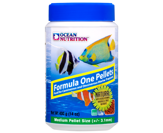 Гранулы Ocean Nutrition Formula One — это богатый белком мягкий и влажный медленно тонущий корм для всех плотоядных (мясоядных) и всеядных (мясо- и растительноядных) морских тропических рыб. В состав гранул входят свежие морепродукты и спирулина, обеспечивающие ежедневное питание с привлекательным вкусом, перед которым рыба не может устоять. Мягкая и влажная природа гранул облегчает их переваривание рыбами, поэтому они производят меньше отходов, и ваш аквариум остается чище. Наградите своих рыбок едой, которую они заслуживают, и накормите их Ocean Nutrition!