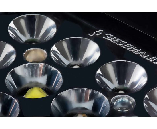 Наша концепция освещения - это как дизайн обрамления, так и сами лампы. При потреблении энергии всего 180 Вт тщательный выбор светодиодов приводит к выдающейся производительности, так что даже более мощные и более многочисленные светодиоды в другой системе не могут достигнуть такого результата. Наш вклад в энергоэффективность в сочетании с выдающимся качеством нашей продукции - это лишь одна из тонких деталей, которые вы найдете в каждой лампе GIESEMANN.