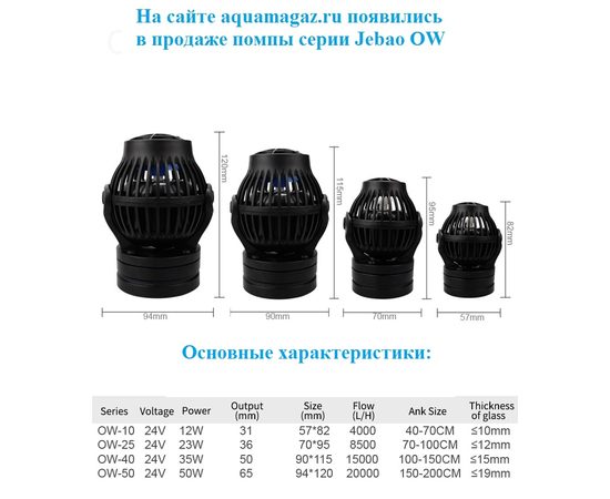 Jebao в 2018 году представила новое, усовершенствованное поколение помп течения – серию OW.