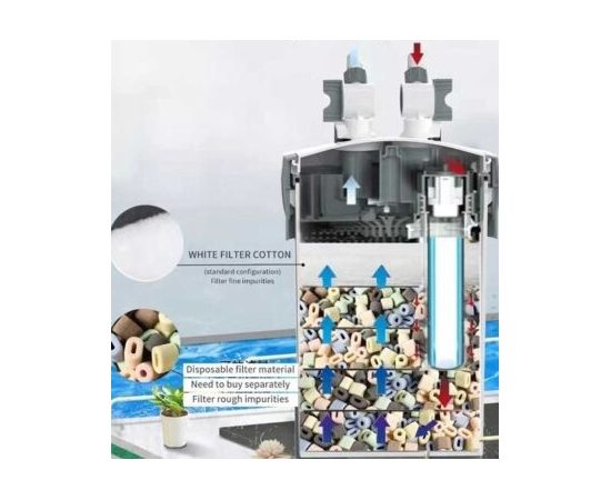 Высокоэффективная фильтрация для более быстрого разложения вредных веществ и длительной эксплуатации; механическое, биологическое, адсорбционное и химическое. С износостойким керамическим валом, увеличенный срок службы. Простая очистка компонентов биохимической среды для защиты от размножения бактерий.