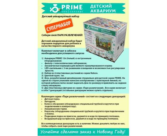 Аквариум PRIME ПАРК РАЗВЛЕЧЕНИЙ 15л белый