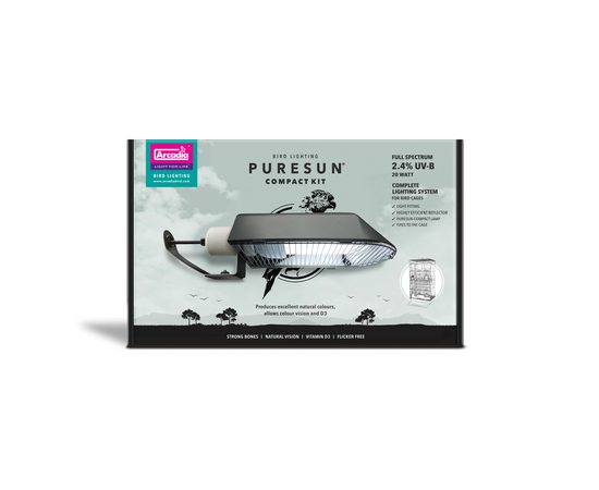 PureSun – Compact Kit можно использовать для маленьких клеток и клеток среднего размера, а также для небольших видов птиц. К ним относятся волнистые попугаи и другие мелкие попугаи, такие как сенегальский и мейерсский, канарейки, зяблики, голуби и многие другие.