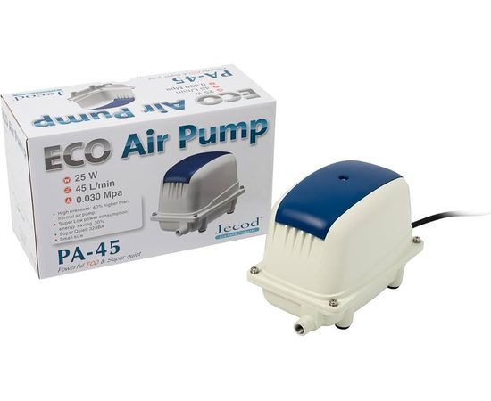 Компрессор мембранный Jecod PA-45 применяется для аэрации прудов, септиков, нерестилищ, аквадизайна, систем автономной канализации, либо других систем, где необходима высокоэффективная аэрация.