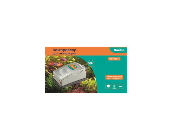 Компрессор Naribo, двухканальный, 5Вт, 2х2,5л/мин с регулятором
