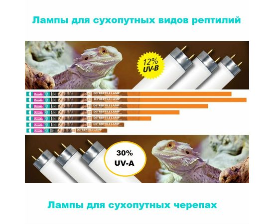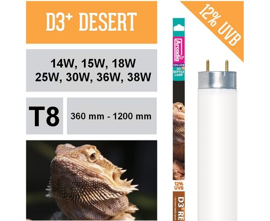 - Лампа Arcadia Reptile D3 + Desert T8 12% UVB может использоваться в сочетании с люминесцентными лампами Arcadia Original Tropical или Freshwater High Output, чтобы стимулировать хороший рост растений.