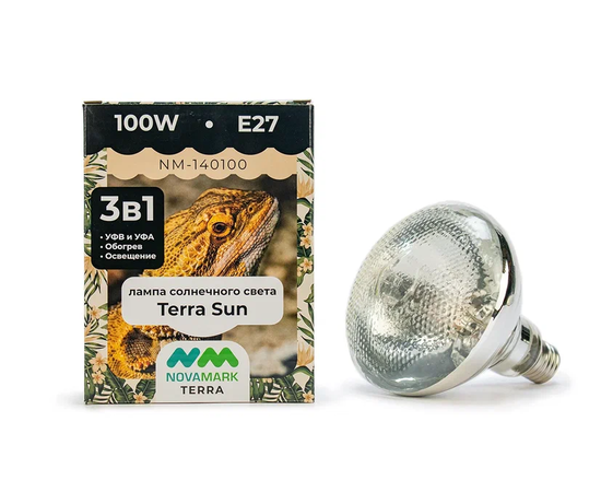 Лампа Солнечного света Terra Sun от NOVAMARK TERRA, идеально подходят для высоких террариумов, а также для террариумов, где необходим УФ высокой интенсивности: дефицит кальция у животного (начальная стадия рахита) или густо засаженный растениями террариум.Лампы NOVAMARK Солнечный свет обеспечат ваших питомцев полным подобием натурального солнечного света, со всеми вытекающими преимуществами. Оптимальные уровни УФВ и УФА, натуральный источник инфракрасного тепла, и видимый спектр приближенный к естественному дневному свету. Технические характеристики: Тип HID, PAR 38 - Газоразрядная лампа со встроенным балластом 100Вт 220-240М 50Гц Цветовая температура 4000К Цветопередача (CRI) ?70 Срок службы 5000 часов