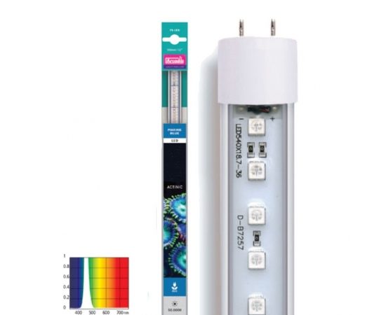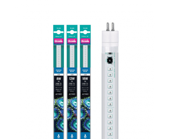 Может также использоваться во всех типах аквариумов (пресноводный аквариум, псевдоморе) в качестве лунного эффекта для просмотра в ночное время суток. Морской синий свет от лампы Aquarium Systems Т5 LED Marine Blue может быть использован в сочетании с любыми другими лампами, чтобы воспроизвести различные световые оттенки и спектры, что, конечно же, должным образом сможет удовлетворить конкретного "аквариумиста". Arcadia T5 Led lampsArcadia led T5 Marine Blue Tubes Лучшие T5 LED актиничные лампы для морского аквариума Эти лампы являются абсолютной заменой люминесцентных ламп T5, без замены фитингов, арматуры и электронных запчастей. Лампы работают с большинством электронных балластов. При использовании в качестве замены люминесцентных ламп T5, используйте уже имеющиеся держатели ламп и балласты. Вращающиеся торцевые крышки обеспечивают идеальную посадку, и благодаря этой функции, можно направлять свет по мере необходимости.