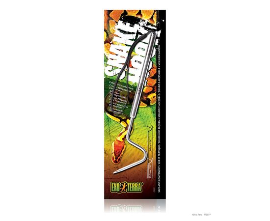 Металлический крюк для змей Exo Terra телескопический , его длина от 25 до 60 см. В полностью раздвинутом состоянии крюк не прокручивается, благодаря чему змея не будет опрокинута. Петля-браслет надежно фиксирует крюк в руке что придает уверенности в использовании. Закругленный наконечник сохраняет безопасность использования как для змеи, так и для владельца. Крюк можно использовать что бы поправить декорации или разравнять грунт.