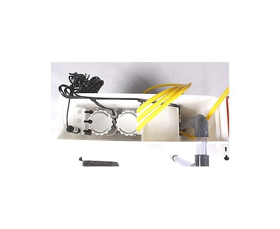 • Новый навесной самп с протеиновым скиммером и фильтровальными элементами. • Держатель для 3-х электродов. • Дозирующий разъем на 3 емкости. • Высокоэффективный протеиновый скиммер (VS-1 / AM-HOB-1). • Возможность установки двух фильтров кипящего слоя FR-S для удаления органики, фосфатов и т.д. • Простота настройки и работы. • Высокая эффективность, долговечность, надежность. • Размеры: длина 43 см., ширина 10 см., высота 38 см. • Помпа (входит в комплект): SHARK 1.0 • Потребляемая мощность помпы: 11 Вт