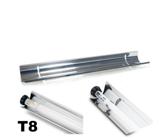 Фирменные алюминиевые рефлекторы для люминесцентных ламп формата Т8. Используя отражатели для ламп Arcadia, Вы удвоите эффективность освещения в два раза. Когда люминесцентная лампа зажигается, свет выделяется равномерно во всех направлениях, в том числе ​​вверх в крышку аквариума. Если же установлен отражатель, то свет не тратится впустую, а перенаправляется туда, где это необходимо - в область аквариума, террариума и т.д., поэтому, используя отражатель в системе освещения, вы достигнете максимальной эффективности. Отражатель может быть установлен под углом, чтобы выделить определенную зону в аквариуме или террариуме. Флуоресцентные лампы имеют цилиндрическую форму, это означает, что свет излучается вокруг трубы по всей длине лампы. Используя правильный отражатель, вы эффективно захватываете весь свет, который исходит из верхней и боковых сторон лампы, что составляет две трети от общего объема освещения.