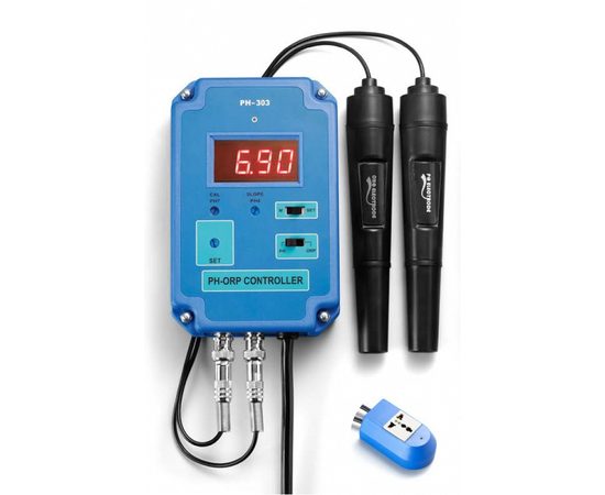 PH/ОВП-метр PH-303 монитор-контроллер с успехом применяется для определения показателей pH (уровень показателя водорода) и ОВП (окислительного и восстановительного потенциала) в бассейнах, аквариумах, промышленных системах водоочистки. При несоблюдении установленных параметров, издается сигнал и отправляется команда посредством исполнительного тракта на пуск-остановку внешних систем. Прибор имеет вход для одного исполнительного механизма. Электроды pH и ОВП идут в основном комплекте.